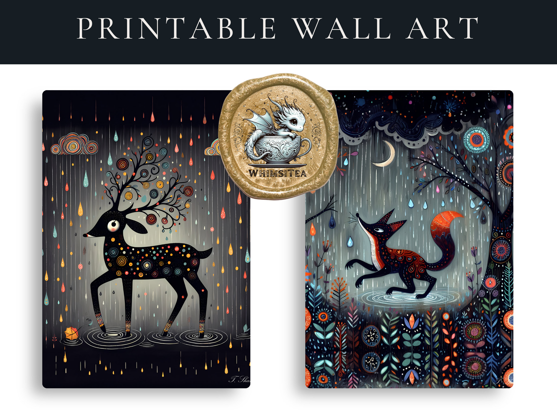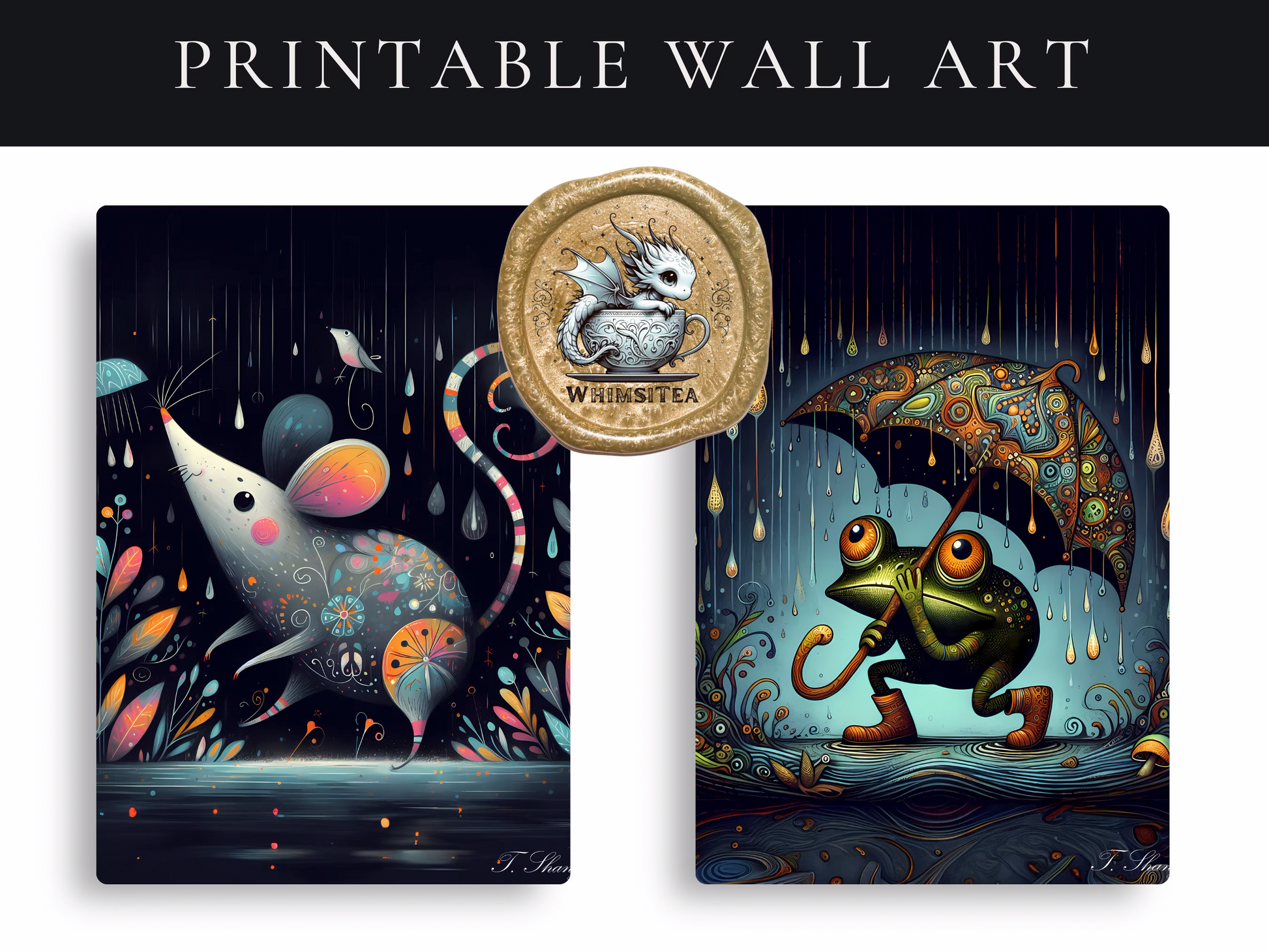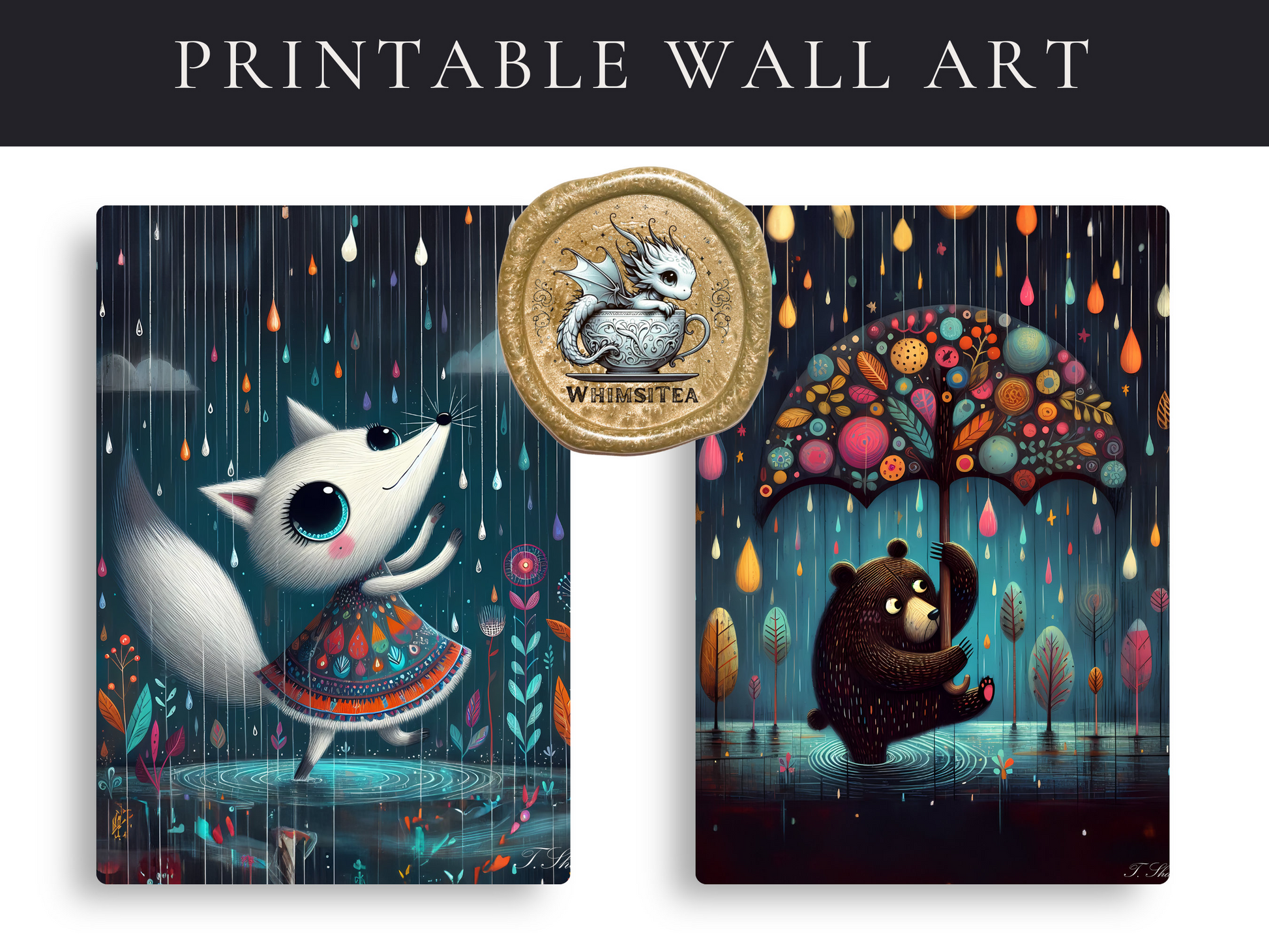 Raindrop Rhapsody: A Symphony of Whimsical Art - Digital Print Collection - Instant Download