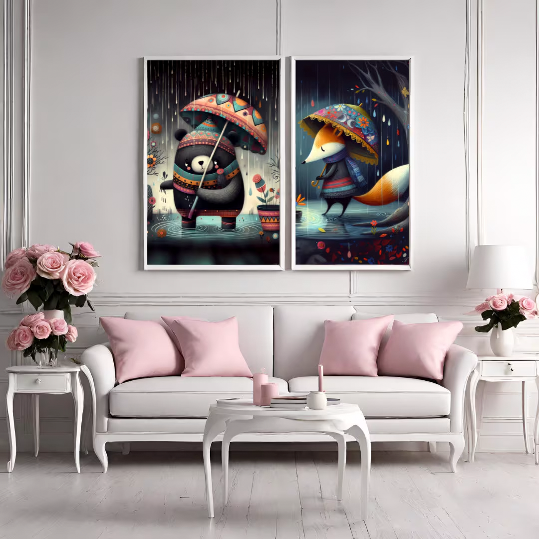 Dive into the enchanting world of 'Raindrop Rhapsody' and let these lyrical illustrations play a visual tune in your space.